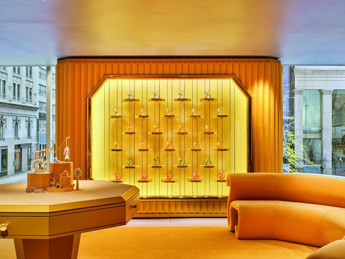 “Como Nova York é uma capital icônica da moda e também parece uma segunda casa para mim, é emocionante ver nosso carro-chefe na 5ª Avenida ganhar vida. Queria criar a experiência de entrar num enorme cristal – o mundo da Swarovski – e despertar a imaginação desde o momento em que entramos na loja”, comenta a diretora criativa Giovanna Engelbert,