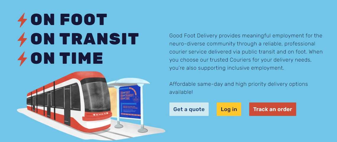 A Good Foot Delivery tornou-se um serviço de entrega rápido e confiável, que atende, por hora, a região metropolitana de Toronto. Os funcionários neurodiversos que realizam as entregas utilizam exclusivamente transporte público ou fazem as entregas a pé. Isso torna o serviço extremamente competitivo em termos de preço, além de ser altamente sustentável. Eles têm integração com as principais plataformas de e-commerce, como o Shopify, para que os clientes possam escolher a Good Foot como opção de entrega.
