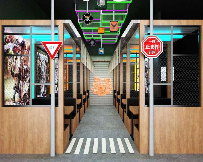 Os ambientes e os pratos foram pensados para apaixonados pela cultura oriental. O espaço comporta até 80 pessoas e conta com mesas comunitárias e cabines com até quatro lugares, para receber desde grandes grupos para comemorações até casais e pequenos grupos para reuniões íntimas. Nos fundos do restaurante, é possível encontrar uma sala de karaokê. O limite da sala é de 5 pessoas e o horário máximo de 1h15 por grupo.