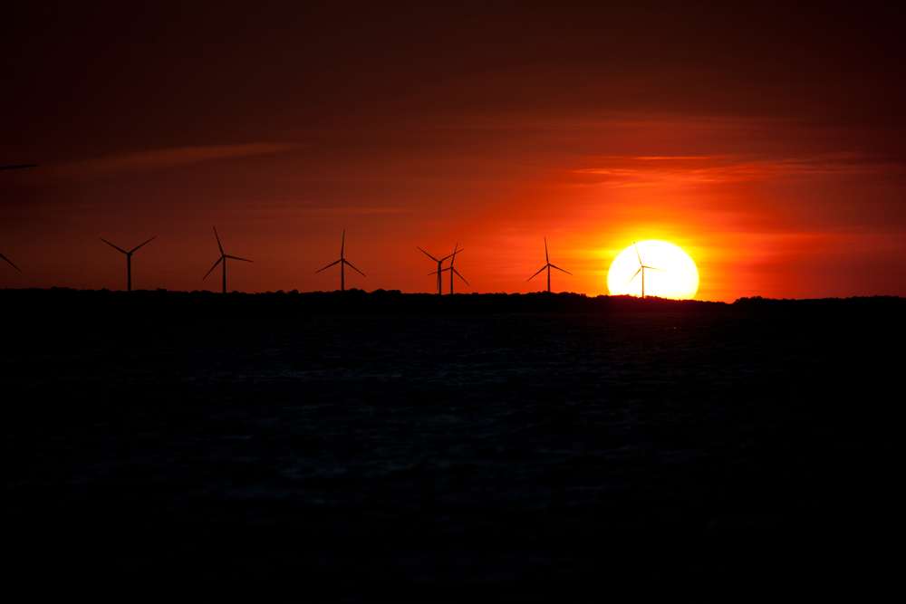 No canteiro de obras, milhares de trabalhadores instalam pilares sobre os quais serão montados painéis solares. Os pilares se erguem como cactos de concreto perfeitamente alinhados, que se estendem até onde a vista alcança. Outros trabalhadores constroem as fundações para instalação de enormes turbinas eólicas; também transportam material de construção, constroem subestações e instalam quilômetros de fios.