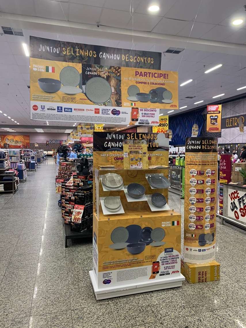 Em campanha recente da rede paranaense Super Muffato, as protagonistas foram cerâmicas da marca italiana Pagnossin. Até o fim do ano passado, o cliente Clubefato pôde colecionar a quantidade de selinhos necessários para fazer a compra de toda linha de pratos de jantar e serviço com descontos especiais, através das lojas físicas ou pelo aplicativo da rede. As compras com descontos das cerâmicas Pagnossin podem ser realizadas pelos clientes até o dia 31 de janeiro.