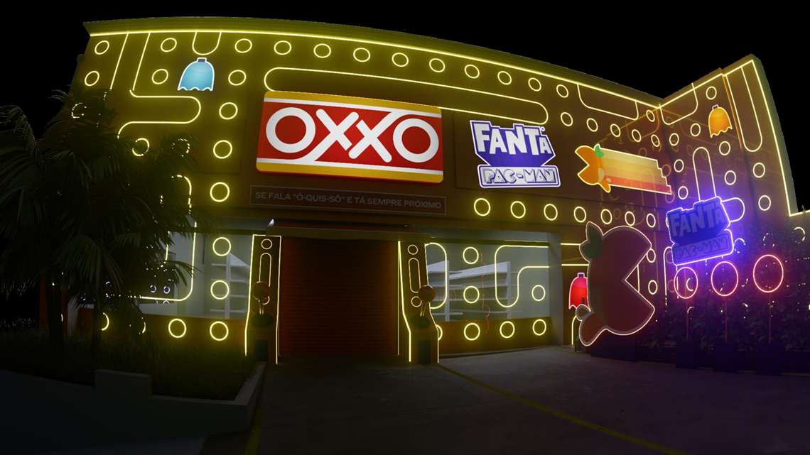 A rede de varejo de proximidade Oxxo repaginou a fachada de uma de suas lojas em Guarulhos. A unidade, localizada na Av. Papa João XXIII, foi transformada em uma grande máquina de videogame dos anos 80 para o lançamento da Fanta Pac-Man.