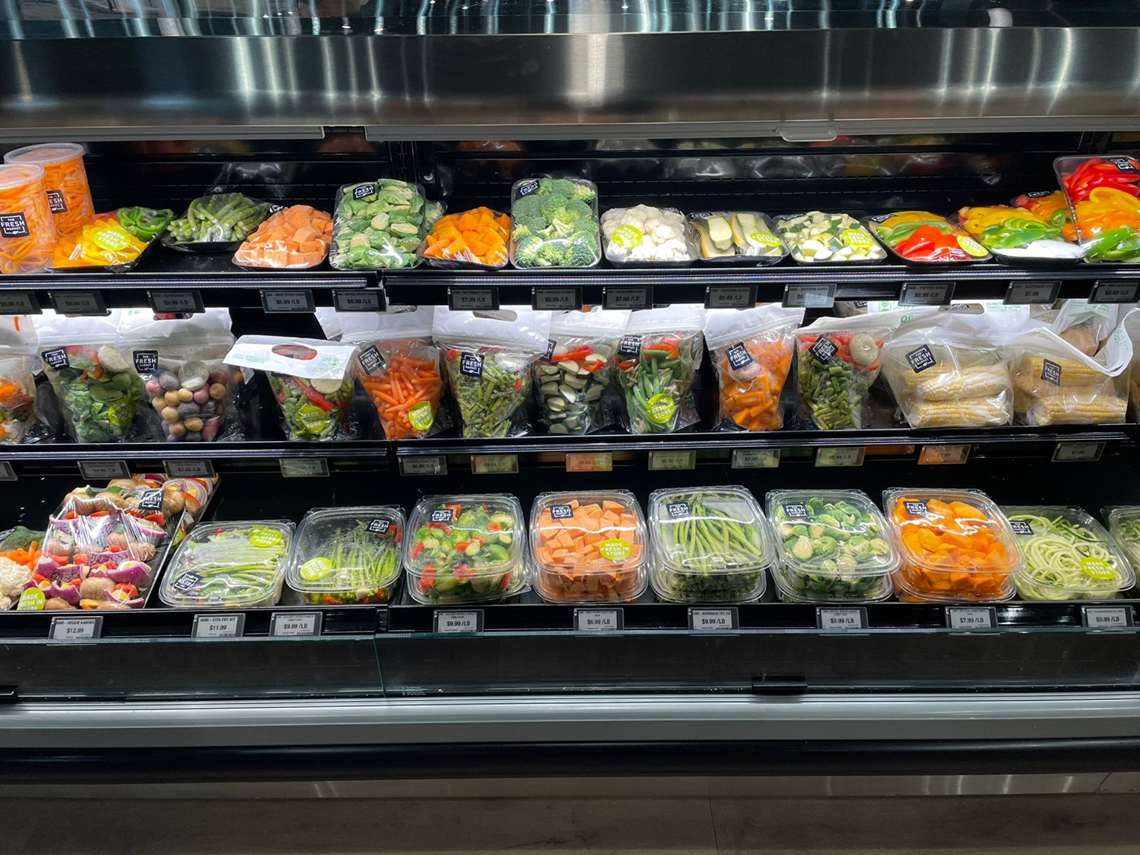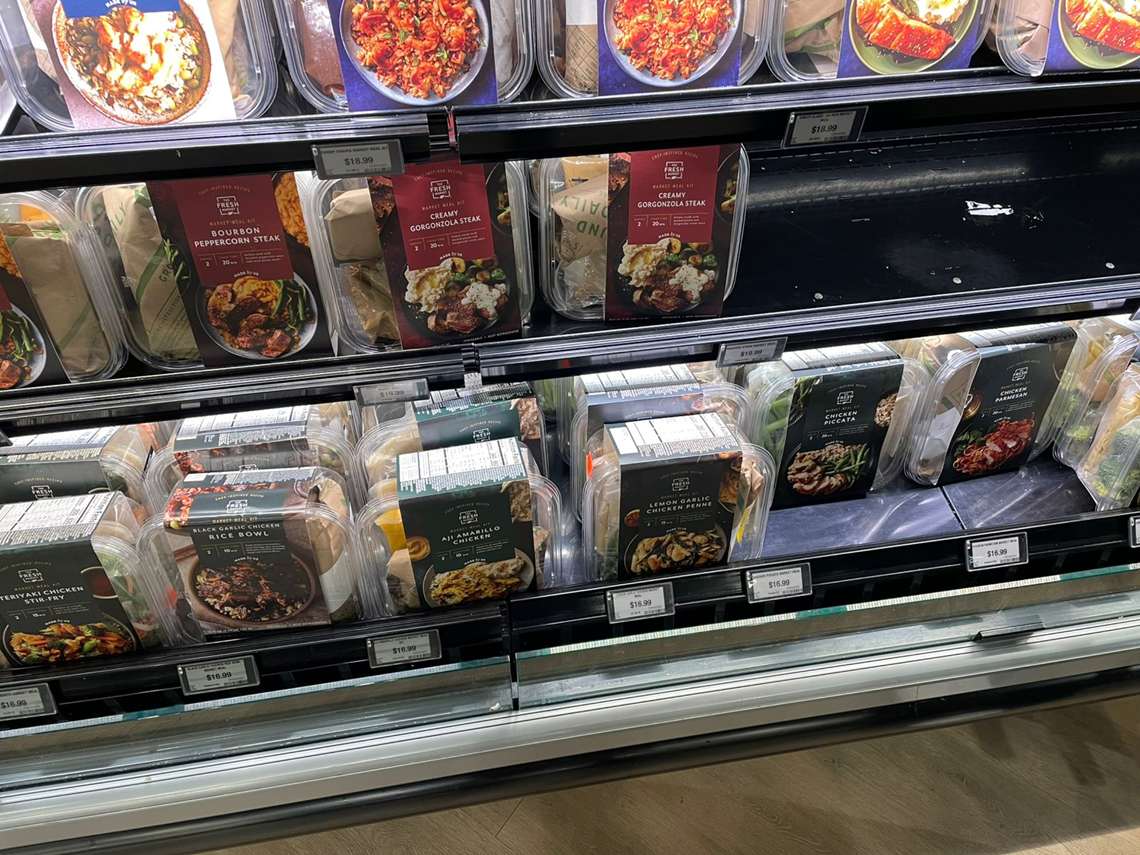 Nas prateleiras, estão carnes e frutos do mar frescos em cortes premium e opções sustentáveis, padaria artesanal, produtos orgânicos e locais, refeições prontas e itens de marca própria e seleções sazonais.