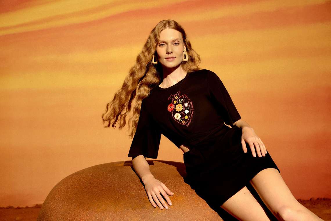 Uma das festas mais tradicionais e coloridas do Nordeste, o São João foi o cenário escolhido para marcar essa collab, que traz peças que destacam o cotidiano do interior nordestino, com um enfoque especial na literatura de cordel, mesclando tradição e modernidade de maneira única.