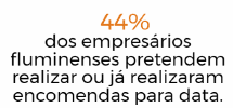 Em relação aos pedidos para o período, 44% dos empresários fluminenses pretendem realizar ou já realizaram encomendas para a dará. Dos empresários que têm intenção de realizar encomendas, 82% afirmam que serão feitas nos mesmos meses do ano anterior, predominando os pedidos entre outubro e novembro.