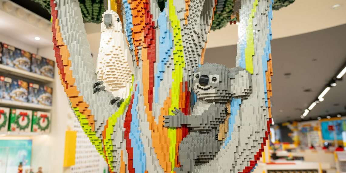 A loja de referência inclui a primeira fábrica de minifiguras Lego na Austrália, além de peças personalizadas de grande formato inspiradas em ícones e arquitetura locais, como a Ponte da Baía de Sidney, com quase 600 mil peças; o edifício Opera House, cartão-postal da cidade, composto por mais de 303 mil peças; e o raro eucalipto arco-íris, cuja árvore possui 183.394 peças de Lego, estendendo-se do primeiro ao segundo patamar, com todos os animais nativos australianos em volta dela.