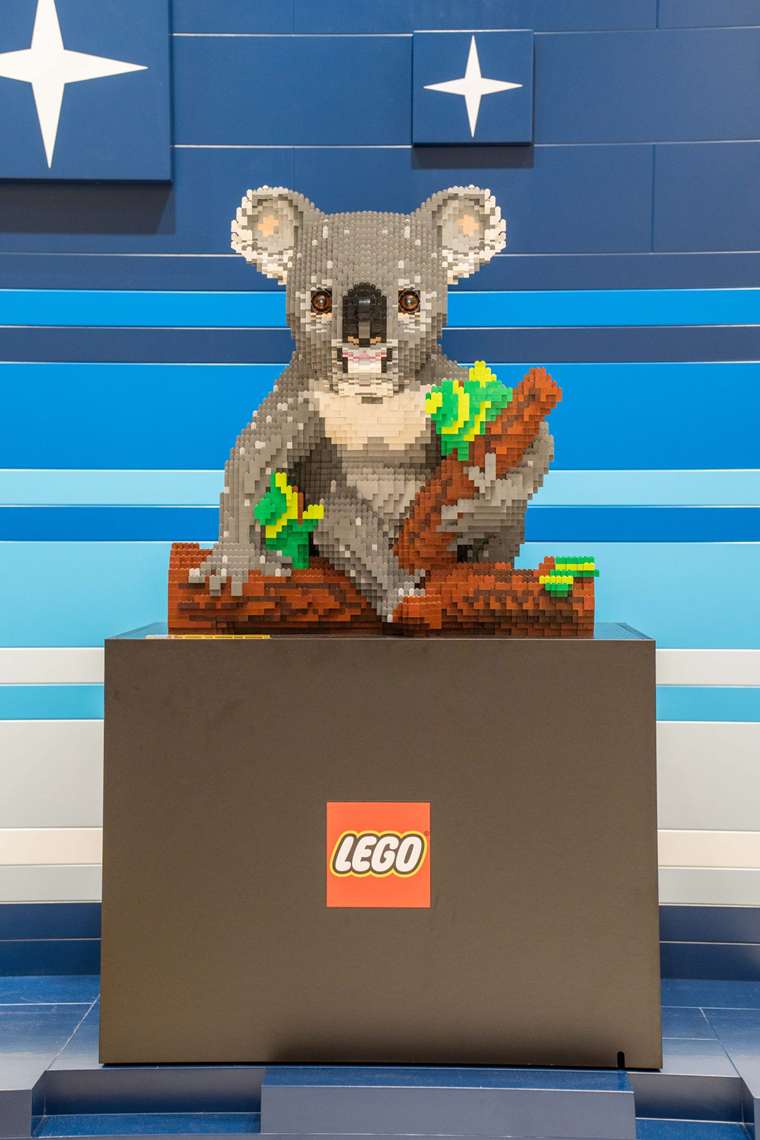 A loja de referência inclui a primeira fábrica de minifiguras Lego na Austrália, além de peças personalizadas de grande formato inspiradas em ícones e arquitetura locais, como a Ponte da Baía de Sidney, com quase 600 mil peças;  o edifício Opera House, cartão-postal da cidade, composto por mais de 303 mil peças; e o raro eucalipto arco-íris, cuja árvore possui 183.394 peças de Lego, estendendo-se do primeiro ao segundo patamar, com todos os animais nativos australianos em volta dela.