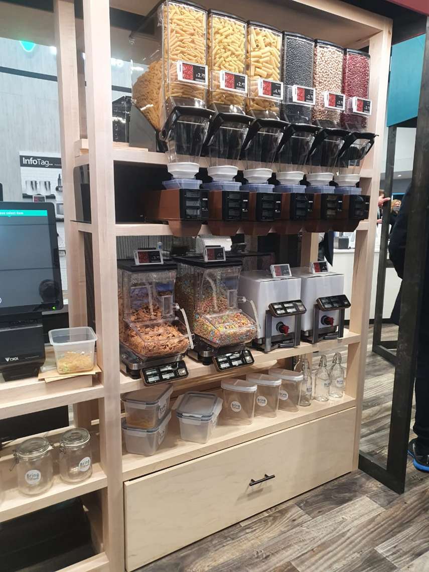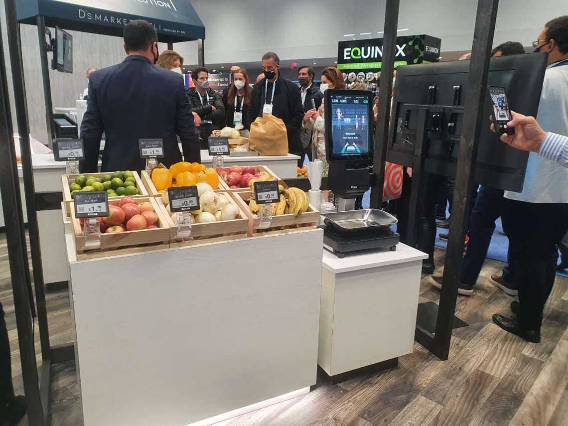 O Grupo Digi/Teraoka expõe impressoras, balanças, sistemas POS, soluções de checkout móvel e etiquetas eletrônicas, entre outras tecnologias. Um dos destaques da empresa na NRF de 2022 é uma máquina que facilita a compra de produtos a granel, que podem ser coletados e pesados pelo próprio cliente.