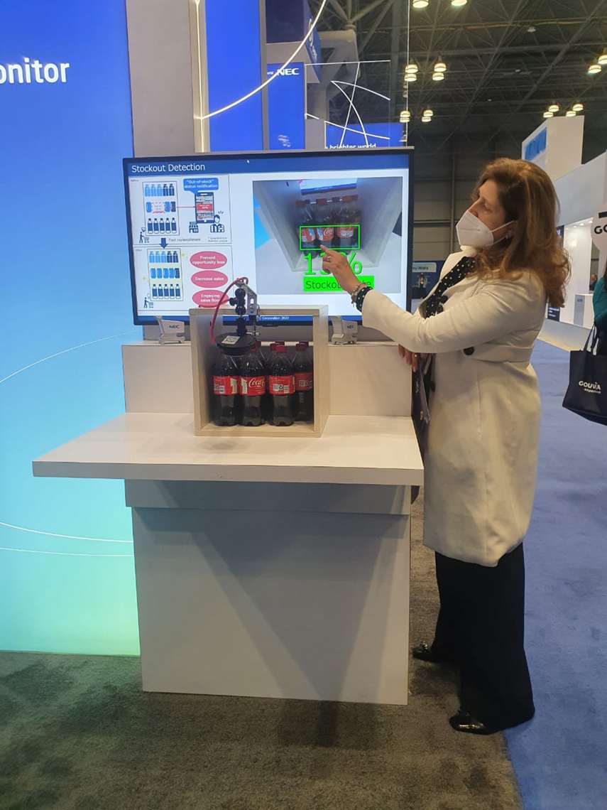 Telas da Nec também são usados para monitoramento de estoque e do posicionamento do produto na prateleira. “Dessa forma, é possível fazer o planograma da loja. Os computadores mostram, até, movimentos como o de consumidores que pegaram o produto na mão e devolveram, permitindo uma série de ‘imputs’ de dados que vão para o BI e depois vão suportar a tomada de decisão”, analisa Regiane.