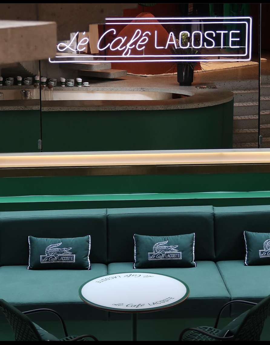 O conceito do Le Café Lacoste é uma fusão inovadora entre moda e café, criada pela marca com o objetivo de combinar o ambiente parisiense com um toque moderno, oferecendo uma experiência imersiva que celebra a elegância e a herança francesa da marca.
