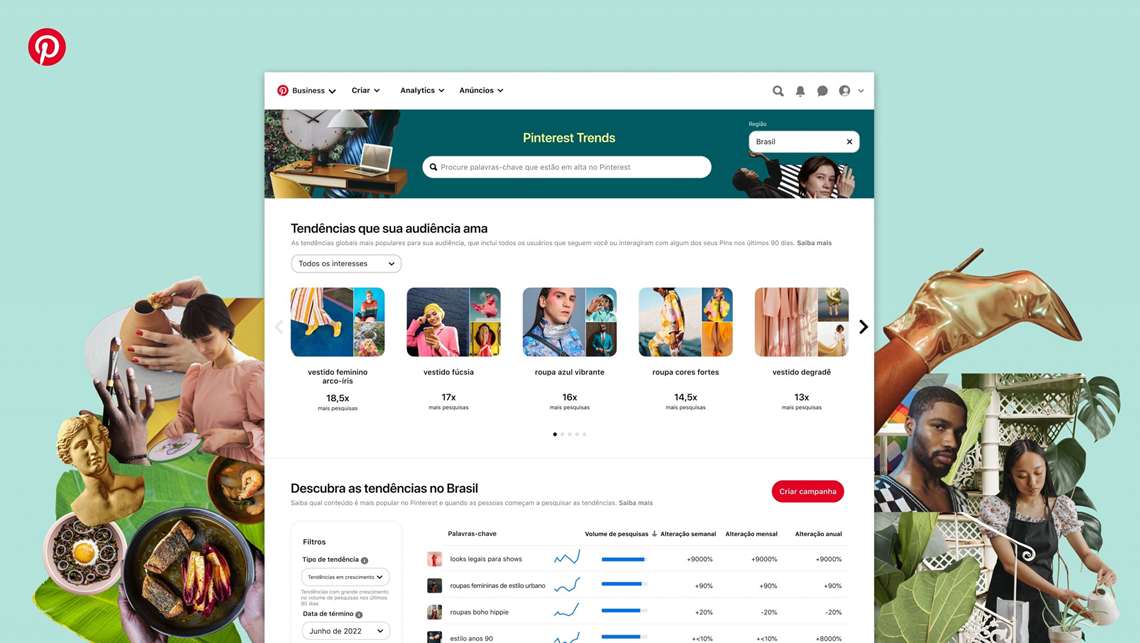 A partir dessa semana, o Pinterest lançará uma ferramenta de tendências expandida e uma nova API para conversões, disponíveis globalmente. Com a novidade, a plataforma espera dobrar o número de anunciantes e lançar, ainda, novas ferramentas para profissionais de marketing que dão suporte a jornadas coesas desde o início do ciclo de vida da campanha até os relatórios pós-campanha.