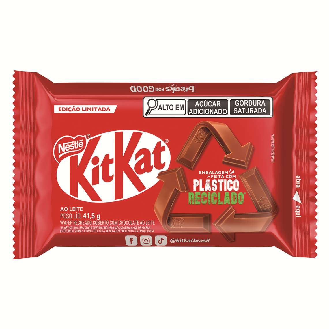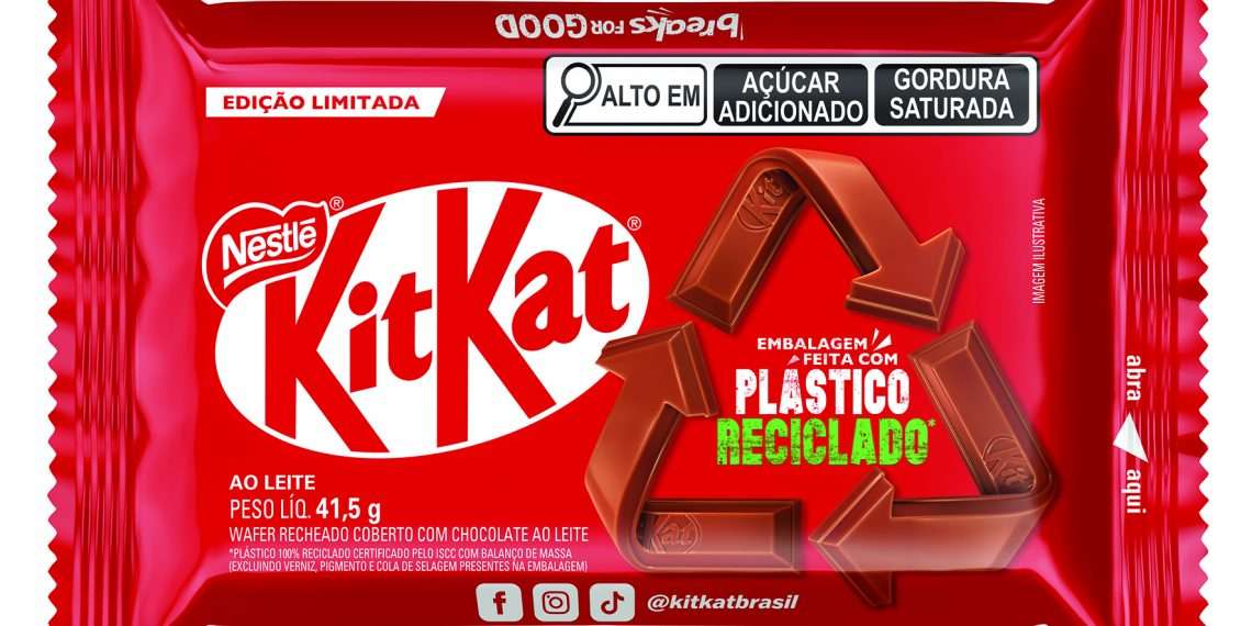 Para reforçar seu compromisso com a circularidade, a KitKat lançou uma edição-manifesto limitada de seus chocolates com embalagens feitas com 100% de plástico reciclado. A iniciativa faz parte dos esforços da Nestlé para aumentar a reciclagem de resíduos plásticos e minimizar o impacto ambiental de suas embalagens.