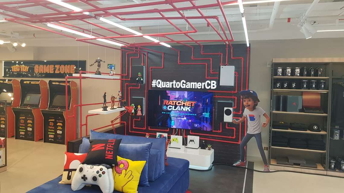O ambiente também conta com a simulação do que seria um quarto “gamer” e máquinas de fliperama ao lado. Nessa mesma região, a Casas Bahia vai disponibilizar 5 gurus tecnológicos que vão auxiliar os consumidores a configurar e usar seus aparelhos.