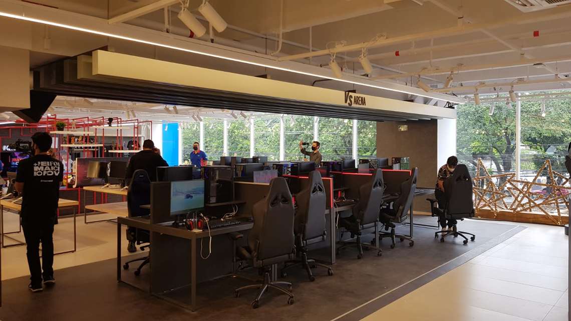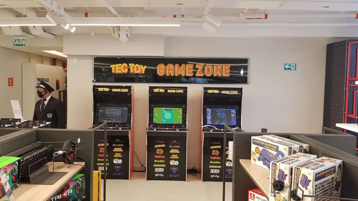 A loja também tem uma parte destinada para games e tecnologia. Uma pequena arena com dez computadores foi montada no local para simular o clima de uma competição oficial de esportes eletrônicos, ou eSports. Além disso, dois telões com arquibancadas também estão disponíveis para transmissão de campeonatos de games ou para jogar.