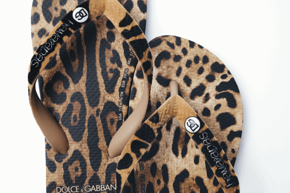 Os quatro modelos da clássica Havaianas Top foram divididos em duas famílias: Clássicos, com as estampas de pele de leopardo e o elegante preto e branco da zebra; e Ícones, que apresentam a intensidade azul das maiólicas italianas no blue mediterraneo, além da tradição vibrante do carretto siciliano.