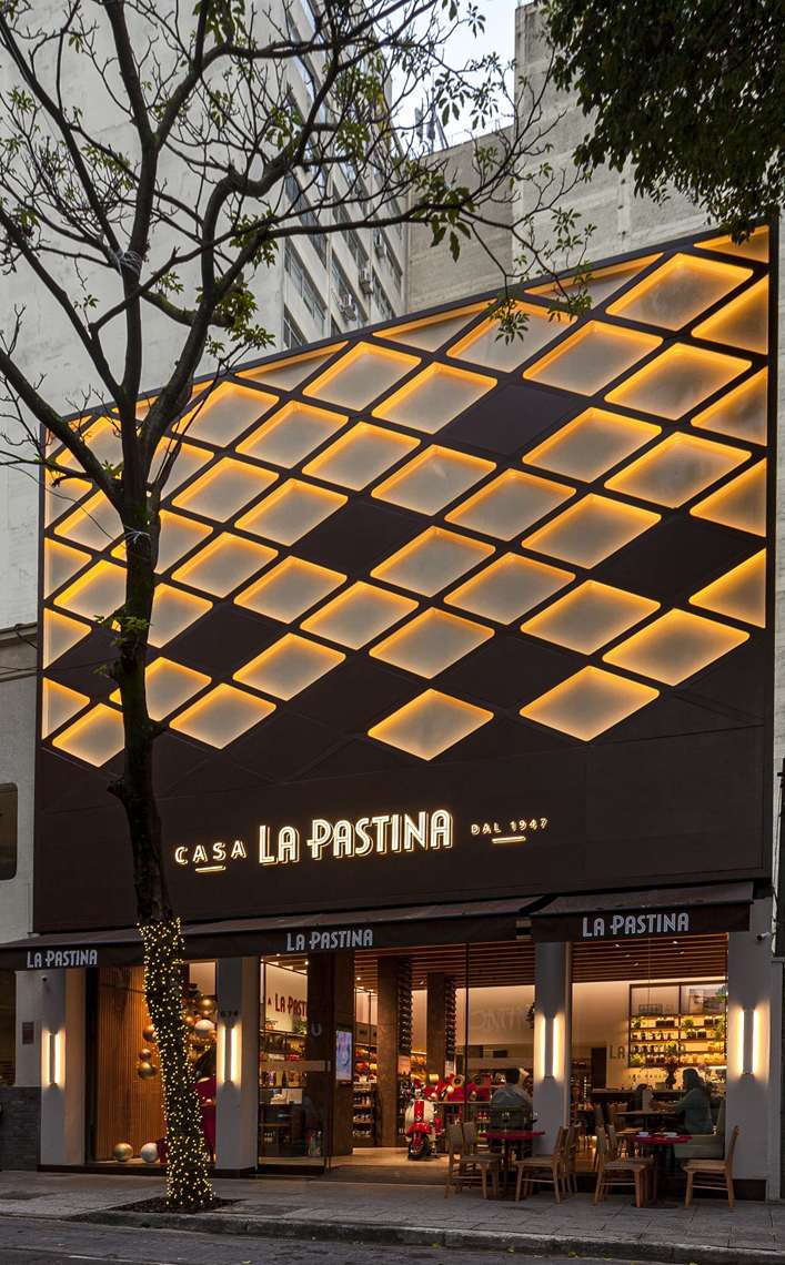 A loja-conceito tem dois andares e 620 m² que tem por objetivo, segundo o grupo, “proporcionar uma experiência completa e total imersão na identidade e valores da La Pastina”. A fachada é quase toda aberta, o que permite que a luz solar penetre por todo ambiente e garante uma sensação de bem-estar interior.