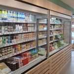Na entrada o destaque fica para cabines específicas para deixar os pets enquanto as compras são feitas, e na saída, destaque para o pagamento apenas feito por self-checkouts, deixando a operação mais enxuta e tecnológica.