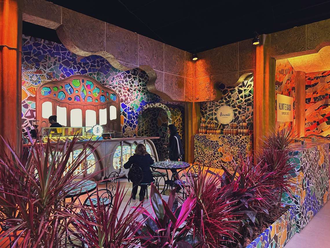 A Biscoitê, boutique de biscoitos e presentes, foi a marca convidada a assinar o Café Batlló, que integra a exposição imersiva “Klimt e Gaudí, o impossível existe”, no Mooca Plaza Shopping, em São Paulo. O espaço foi inspirado na Casa Batlló, ponto turístico de Barcelona, assinada pelo arquiteto Antoní Gaudí.