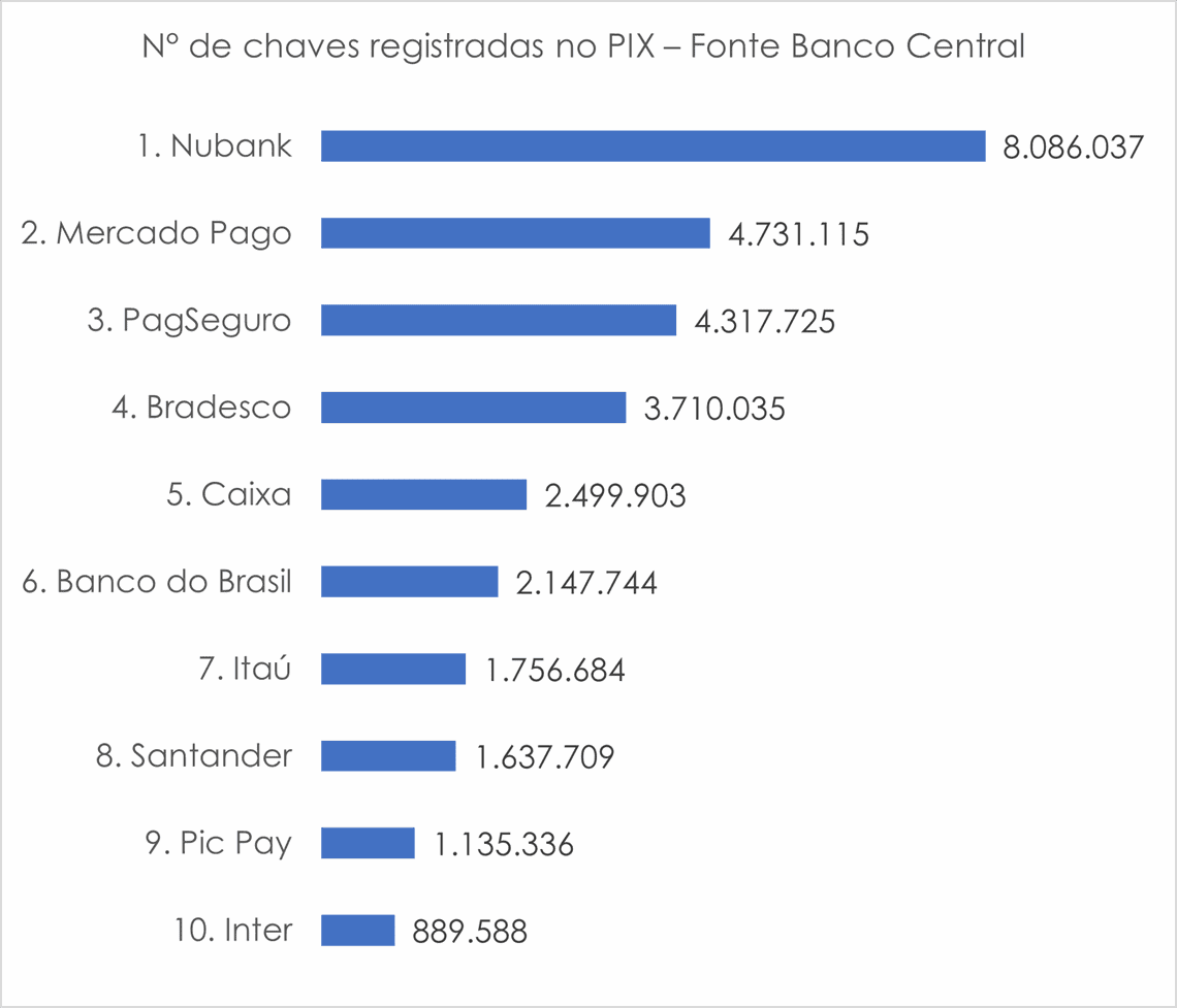 A mesma pesquisa mostra que a adoção será mais forte entre os mais jovens, das gerações Z e Y, que são mais familiarizados com a tecnologia, conectados e digitais. Para estes consumidores, será mais rápida a assimilação das funcionalidades destas ferramentas digitais e eles deverão pressionar a adesão do Pix no varejo. Os últimos números do cadastro de chaves no Pix divulgado pelo Banco Central em meados de outubro mostrou que os bancos digitais e as fintechs saíram na frente dos bancos tradicionais no número de cadastros. A maior familiaridade com os serviços digitais dos usuários destas instituições pode ser uma das razões para explicar o sucesso do número de chaves registradas.