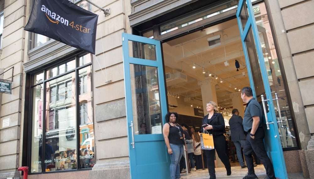 A gigante americana Amazon abriu sua primeira loja física em 2015, uma livraria em Seattle, no Estado de Massachusetts. A companhia tentou diferenciar as lojas dos concorrentes, concedendo descontos aos clientes do Amazon Prime, oferecendo seus próprios dispositivos para teste e venda e criando uma seleção altamente selecionada de livros com base em um sistema de classificação.