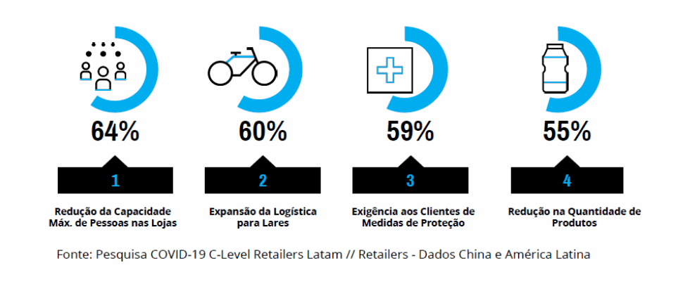 De acordo com uma pesquisa especial sobre Covid-19 realizada com varejistas na América Latina no mês de março, algumas medidas foram tomadas rapidamente por esses players para garantir a segurança dos seus clientes e funcionários e, ao mesmo tempo, assegurar o abastecimento dos lares.