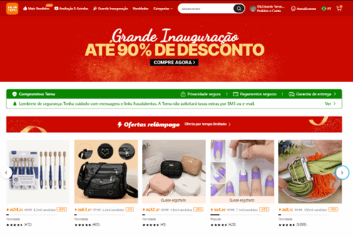A Temu adota essa estratégia, focando no crescimento exponencial dos usuários, em baixas taxas para os sellers, preços agressivos aos consumidores e altíssimos investimentos em marketing social.