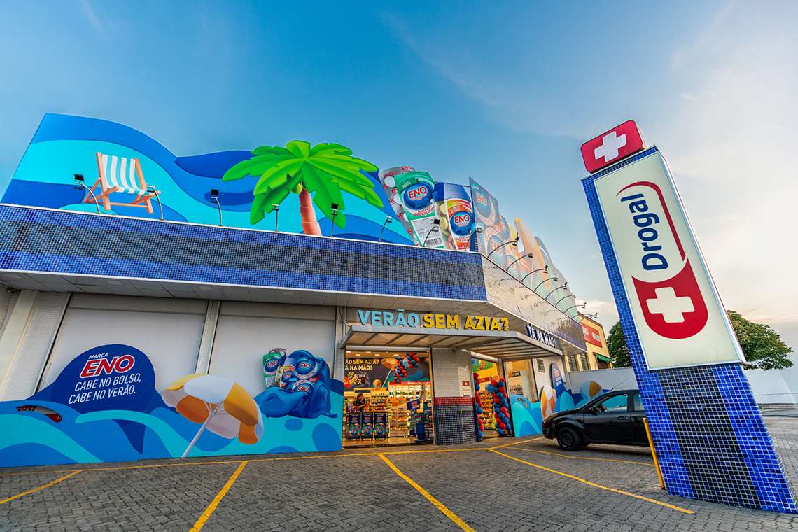 Para promover promoções e proporcionar uma experiência imersiva aos clientes, a Rede Drogal inaugurou em Campinas sua primeira loja temática em parceria com a marca Eno. Com o tema “Verão Sem Azia? Tá na Mão”, a unidade está localizada na rua Oswaldo Oscar Barthelson e permanecerá decorada com essa temática até 15 de janeiro.