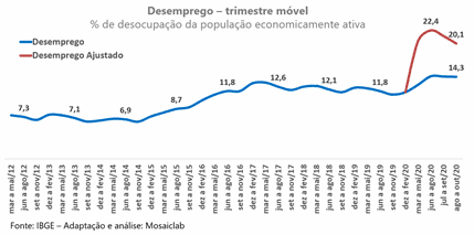 Em um cenário de normalidade, o crescimento do rendimento médio seria uma ótima notícia, sinal de que o poder de consumo das famílias brasileiras está crescendo. Entretanto, no caso dessa crise o cenário é diferente, pois o rendimento médio subiu por que as famílias mais pobres são aquelas que estão perdendo o emprego e renda, enquanto que as famílias mais ricas estão de alguma maneira conseguindo manter ou perder menos. Assim, o crescimento do rendimento médio nos mostra que a desigualdade no Brasil cresceu fortemente durante a Covid-19.