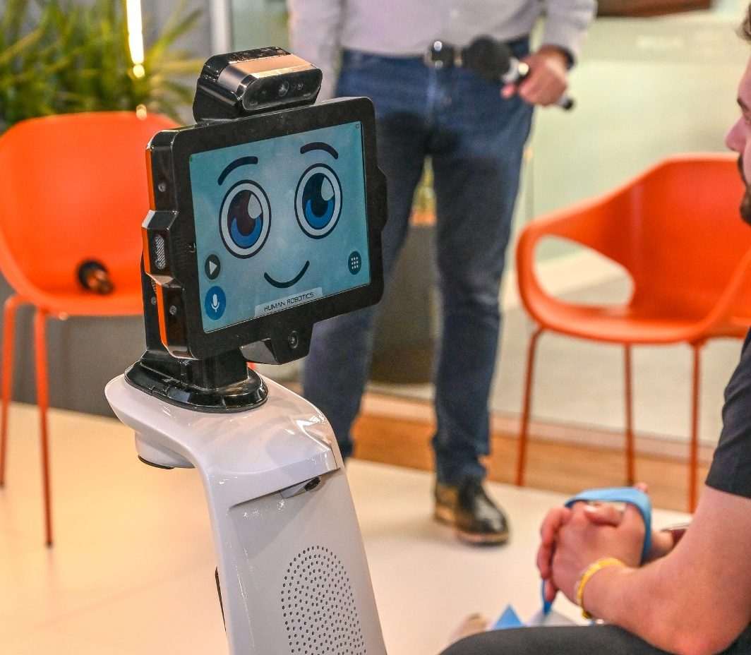 A tecnologia incorpora um “rosto” com expressões programadas, como piscar e sorrir, para gerar empatia e conquistar o público.