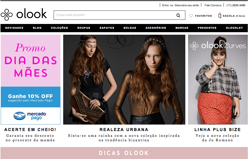 O e-commerce Olook destacou-se por oferecer uma experiência diferenciada de compra, recomendando uma vitrine com produtos selecionados de acordo com o perfil identificado da consumidora, após o preenchimento de um rápido style quiz (uma enquete que avalia o estilo da mulher).