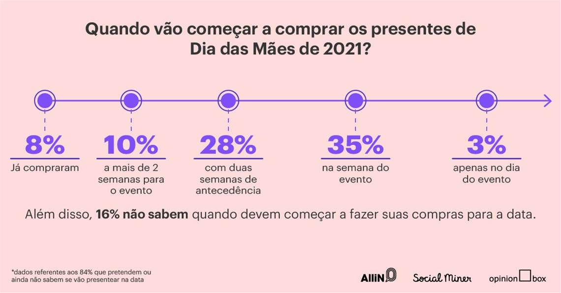 O Dia das Mães, segunda principal data para o varejo, atrás apenas do Natal, deve movimentar o setor apesar das medidas de isolamento social decorrentes da pandemia de Covid-19. Um estudo realizado pela All iN e pela Social Miner em parceria com a Opinion Box revela que 66% dos brasileiros estão decididos a ir às compras, enquanto 18% ainda estão na dúvida se vão presentear alguém na data.