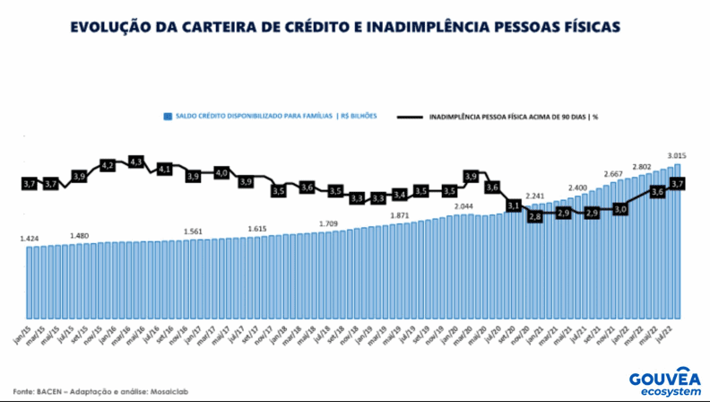 Ao longo desse tempo, a inadimplência tem oscilado e é inegável um crescimento mais recente desse percentual, como resultado do quadro econômico mais amplo envolvendo os dramas vividos na pandemia e seus impactos no emprego, na renda, nas taxas de juros e na inflação.