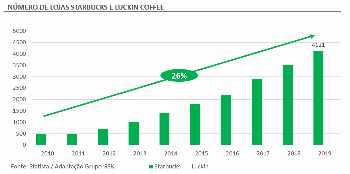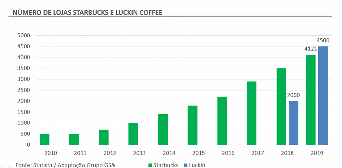 Os planos da empresa são no mínimo ambiciosos. Para cumprir sua meta de expansão, a companhia chegou a abrir uma loja a cada quatro horas no mercado chinês em 2018, fechando o ano com cerca de 2 mil unidades e pretende encerrar o ano de 2019 com 4.500 localizações.