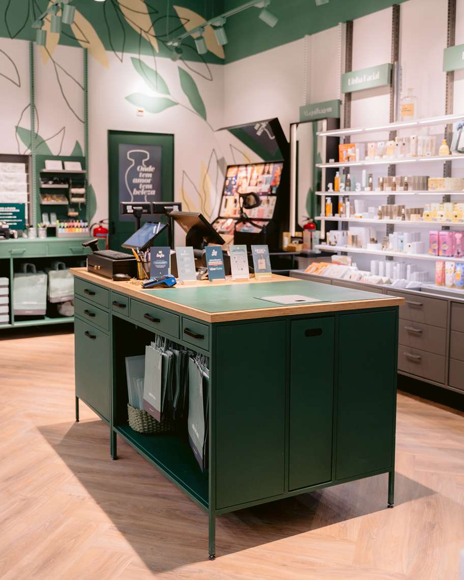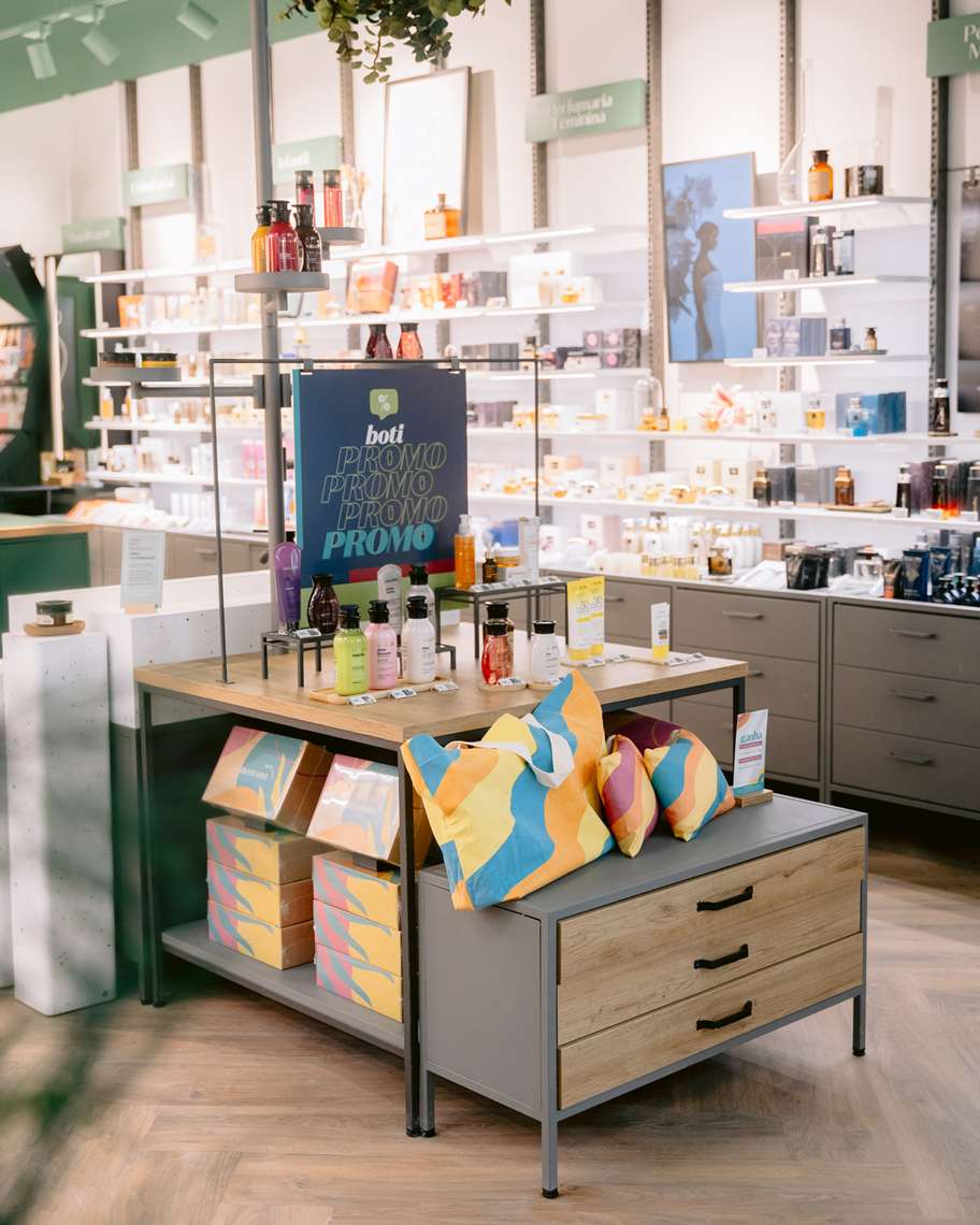 A flagship de Portugal foi desenvolvida com atributos sustentáveis. No espaço da loja, há um expositor dedicado somente aos refis, embalagens que geram menos resíduos em longo prazo, e outro designado para ecopontos do Boti Recicla para o descarte de embalagens de produtos vazios da marca ou de qualquer outra.