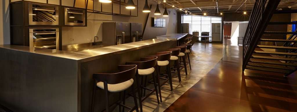 Os cursos de gastronomia são realizados no piso superior, onde está montada uma cozinha funcional com diversos produtos da linha Gourmand. Além disso, ali, há também uma área voltada para os arquitetos que buscam ideias – uma forma de estreitar as relações da marca com os profissionais do segmento.