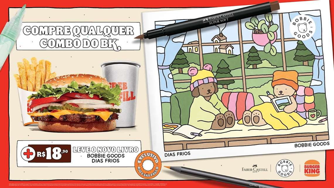 A rede de fast food Burger King se rendeu à febre dos desenhos fofos dos livros Bobbie Goods em uma collab. A parceria inclui combos com brindes especiais e uma loja totalmente imersiva em que os clientes poderão colorir as paredes.
