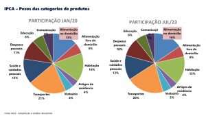 Analisando a inflação acumulada desde o início da pandemia até agora (jan/20 a jul/23), o aumento de preços de alimentos foi de 43,96% – todos nós sentimos no bolso como a conta de supermercados ficou mais pesada -, enquanto a inflação total deste mesmo período foi de 25,33% e o crescimento dos rendimentos dos trabalhadores brasileiros subiu 24,72%.