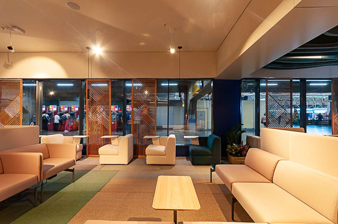 Localizado no mezanino (piso principal do Terminal), o espaço foi projetado para oferecer um refúgio aos viajantes que buscam descanso durante suas viagens e servirá como um lounge premium onde os passageiros poderão trabalhar ou simplesmente relaxar em um ambiente confortável.