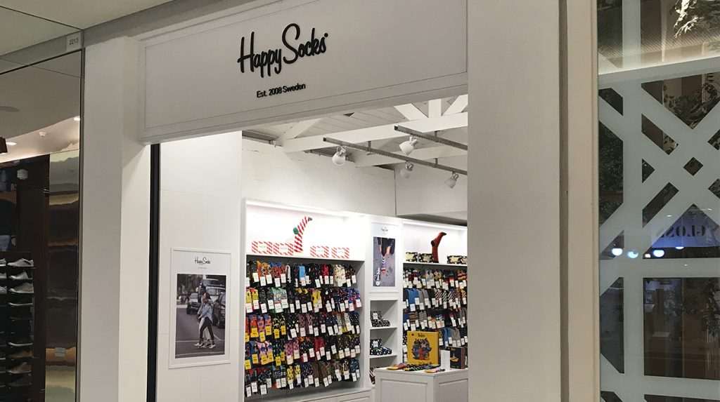A nova unidade da Happy Socks, empresa especializada em meias importadas, é a primeira loja conceito no Brasil, com extensa variedade de modelos e designs, a partir de diversas combinações de cores e padrões.