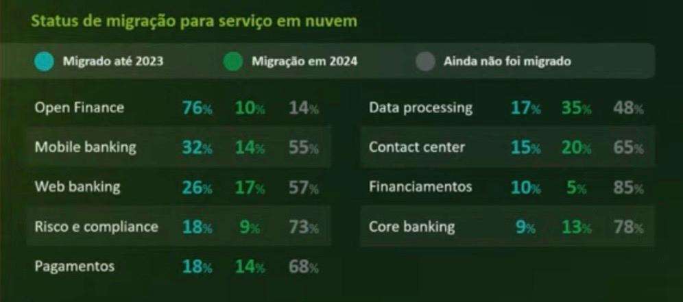 As instituições financeiras estão migrando todos os seus serviços para a nuvem. Veja abaixo o status de cada um:
