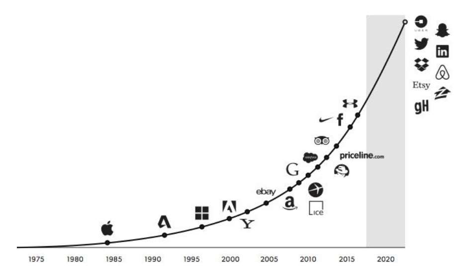 É um modelo de negócio desenhado para performance e escala. Atualmente, das 500 maiores empresas nos EUA, 21 delas são negócios digitais (4% do índice), mas representam incríveis 20% do faturamento.