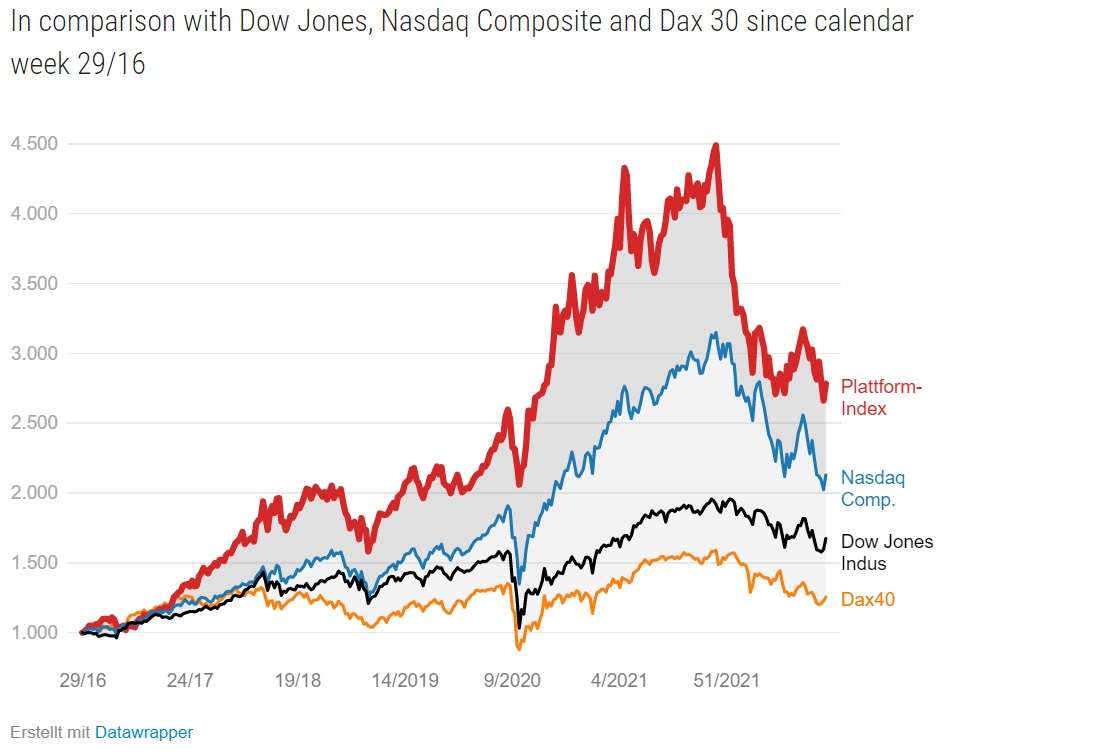 Esse modelo de negócio que privilegia a escalabilidade e margens superiores também é demonstrado pela valorização dessas empresas na bolsa americana. Nos últimos 5 anos, mesmo com a queda recente das bolsas e das companhias de tecnologia, essas empresas apresentaram valorização cinco vezes superior à média do índice e 20% superior à das empresas de tecnologia.