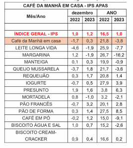 Em comparação com 2022, quando os itens que integram a cesta de café da manhã aumentaram aproximadamente 22%, o resultado do ano anterior traz um importante alívio ao bolso dos consumidores.