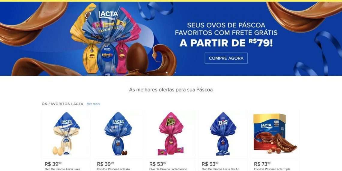 A página oficial dentro do Mercado Livre integra as iniciativas da Lacta para a digitalização da Páscoa. A expectativa é de que até 20% de todas as vendas da marca venham de canais digitais, incluindo sites de e-commerce parceiros, apps de entrega e de sua loja própria.