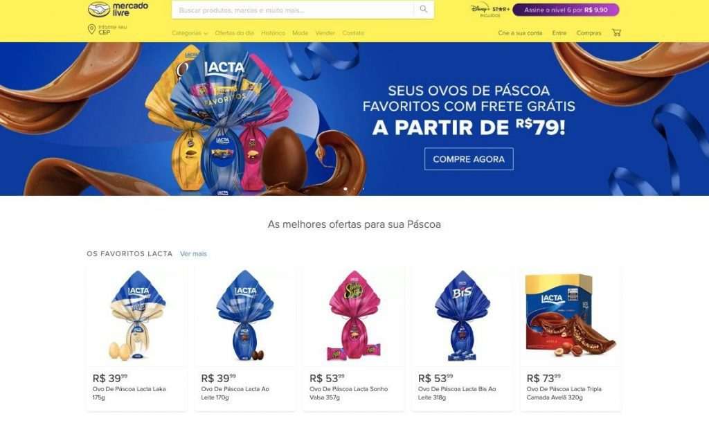 A página oficial dentro do Mercado Livre integra as iniciativas da Lacta para a digitalização da Páscoa. A expectativa é de que até 20% de todas as vendas da marca venham de canais digitais, incluindo sites de e-commerce parceiros, apps de entrega e de sua loja própria.