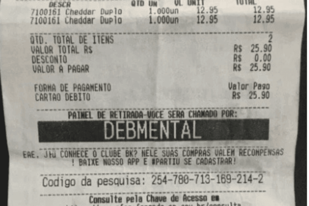 Uma funcionária do Burger King foi demitida após identificar um cliente como ‘debmental’. A ocorrência foi registrada no sábado, 26, em uma unidade da zona leste da capital paulista.