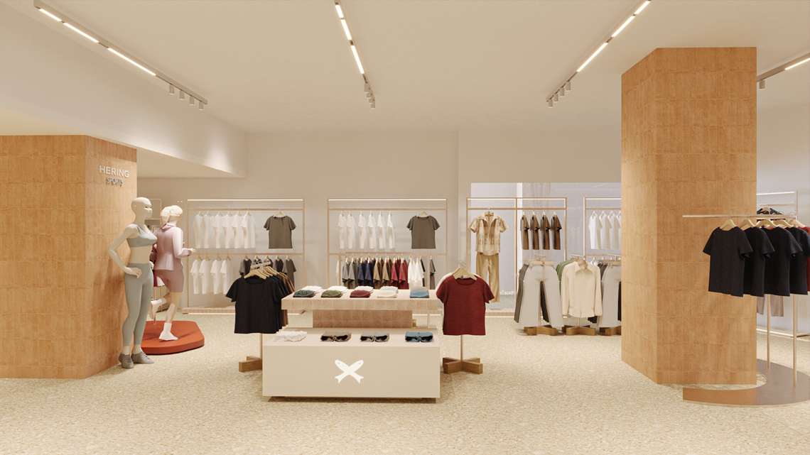 A Hering vai inaugurar no próximo dia 30 uma mega loja no Shopping Ibirapuera, na zona sul de São Paulo. O projeto arquitetônico inédito combina leveza, texturas naturais, cerâmica, madeira e luz quente para criar um ambiente acolhedor e inspirador, de acordo com a marca.