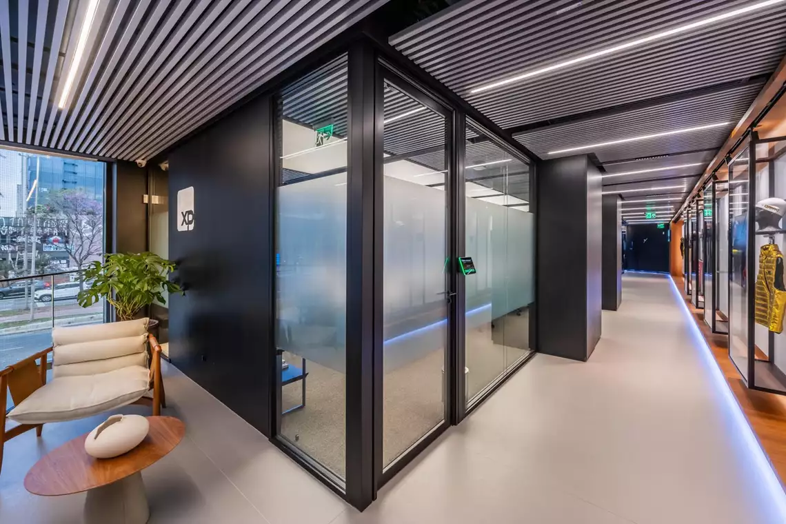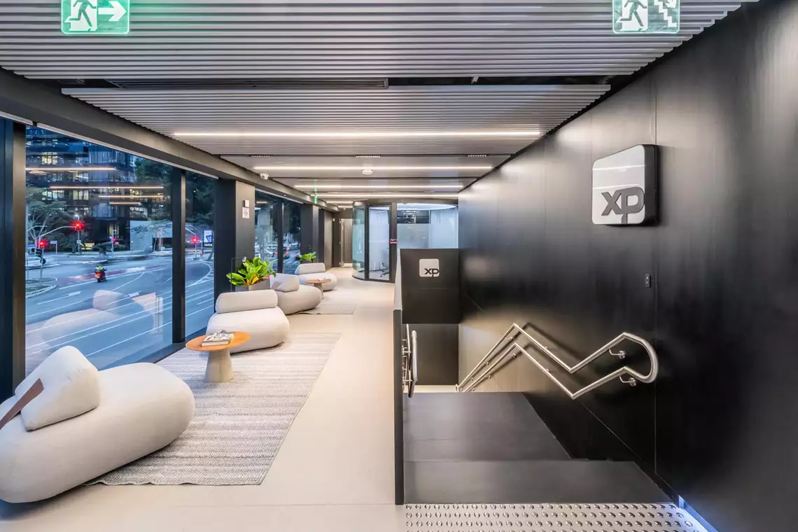 Pense numa agência bancária tradicional. Balcões, filas, luz fria, mesas para reuniões com gerentes. Na flagship da XP, em São Paulo, nada disso se materializa. Os balcões dão lugar a lounges. Em vez de guichês, a loja tem arenas de conteúdo, cafés, espaços para workshops e mentorias.