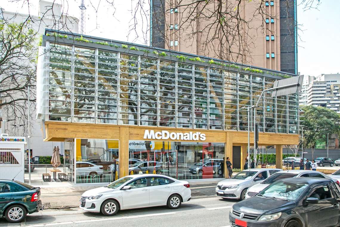 A rede de fast-food McDonald’s inaugura nesta quarta, 30, um restaurante com foco em sustentabilidade na região da Avenida Paulista, centro de São Paulo. A unidade tem uma estrutura feita de madeira e materiais reciclados e reúne soluções como composteira para auxílio na gestão de resíduos orgânicos e frota elétrica para abastecimento, entre outras. O novo restaurante fica na Av. Bernardino de Campos, nº 307, e funciona 24 horas.