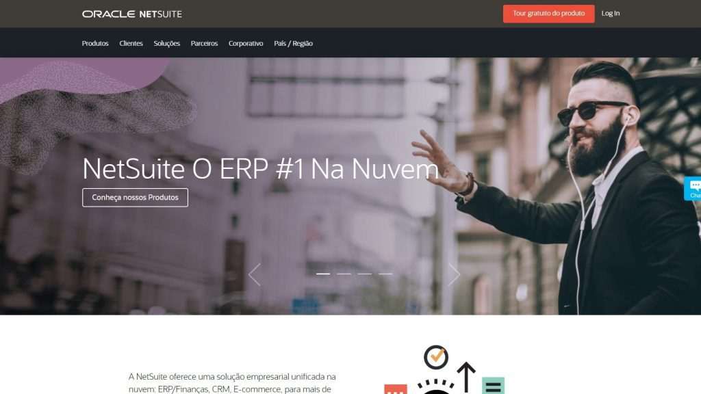 O NetSuite é um sistema de gestão empresarial em nuvem que integra diversos processos como finanças, contabilidade, vendas, estoque e gerenciamento de relacionamento com o cliente (CRM).
